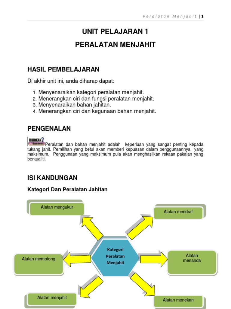 Mesin jahit merupakan mekanis atau elektromekanis yang berfungsi untuk menjahit. Sekolah atau Post a Comment Read more Contoh Soalan Sejarah Tingkatan 1 Bab 4. Kini tiba masanya anda menyediakan peralatan jahit asas dan alat jahit tambahan yang diperlukan dalam proses pembelajaran menjahit pakaian.